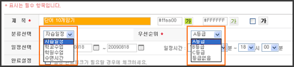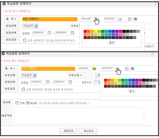 ÀÏÁ¤À» µî·Ï ÇÕ´Ï´Ù. ´Ù¾çÇÑ BGÄ®¶ó(¹ÙÅÁ»ö)¿Í ±ÛÀÚ »öÀ» ÅëÇØ ÀÏÁ¤À» °Á¶ÇÒ ¼ö ÀÖ½À´Ï´Ù.