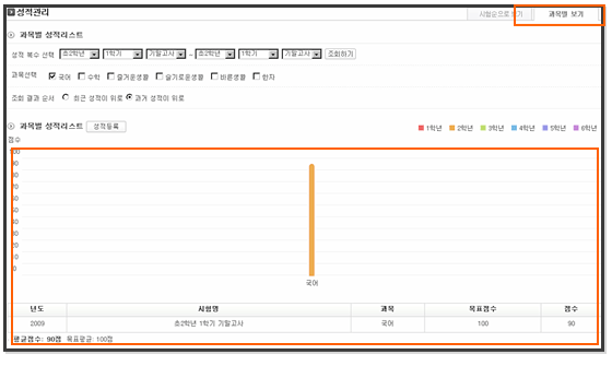 ¶ÇÇÑ °¢ Çг⺰ ÇØ´ç °ú¸ñÀÇ ¼ºÀûÀ» ±×·¡ÇÁ·Î ºñ±³ °¡´ÉÇÕ´Ï´Ù.